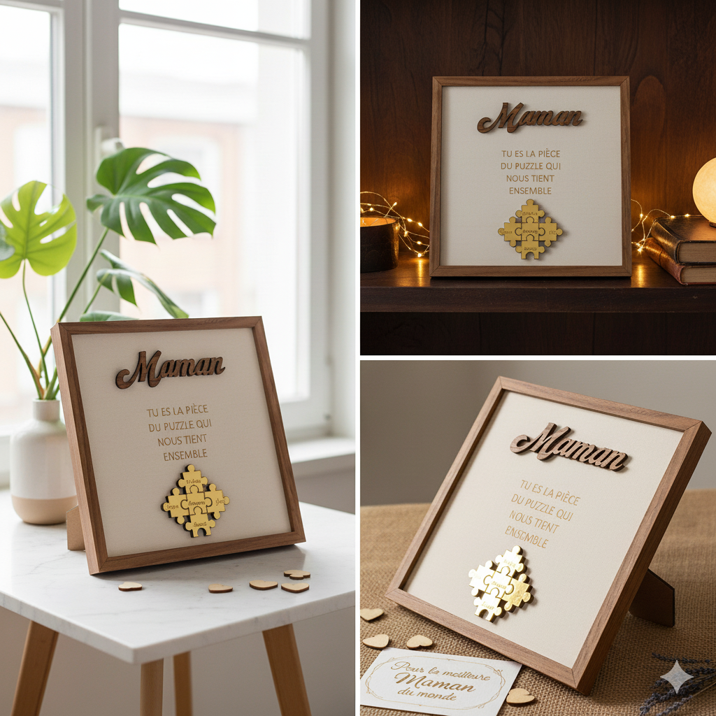 Note : Un puzzle "maman" n'est pas inclus par défaut. N'oubliez pas d'ajouter "maman" lors du choix des pièces de puzzle.